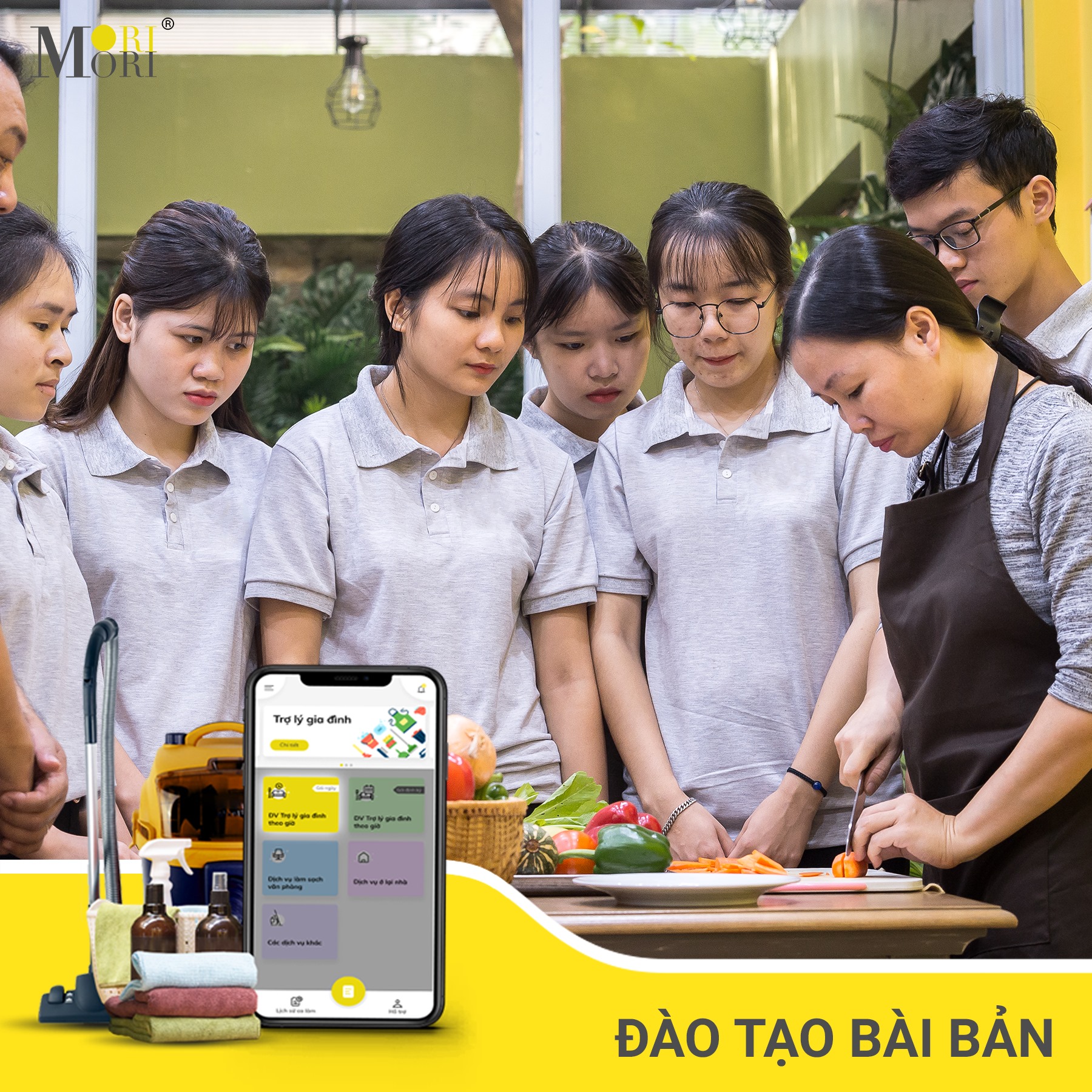 Xem thêmMoriCare là dịch vụ trợ lý gia đình chuyên nghiệp, giúp bạn chăm sóc và duy trì một không gian sống sạch sẽ, an toàn. Với đội ngũ nhân viên giàu kinh nghiệm và được đào tạo bài bản, MoriCare cung cấp các giải pháp tối ưu từ vệ sinh nhà cửa, chăm sóc trẻ em đến nấu ăn và nhiều tiện ích khác. Chúng tôi cam kết mang đến sự tiện nghi và thoải mái, giúp bạn có thêm thời gian tận hưởng cuộc sống mà không phải lo lắng về các công việc gia đình hằng ngày.